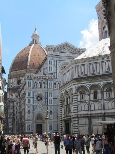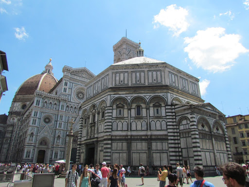Noi am inceput plimbarea chiar din centrul vechi, din Piazza del Duomo, unde am inconjurat Domul (foto 5, 6, 7). Cea de-a patra catedrala ca marime a Europei, constructia sa a durat 4 secole, iar cupola este proiectata de Fillipo Brunelleschi, unul din marile nume ale Renasterii care au facut acest oras. Apropo, s-ar putea sa stii ca Florenta este supranumita ,,Leaganul Renasterii” si principala capitala artistica a Europei, alte mari nume ca Dante, Machiavelli, Michelangelo si Galileo fiind legate de capitala Toscanei.